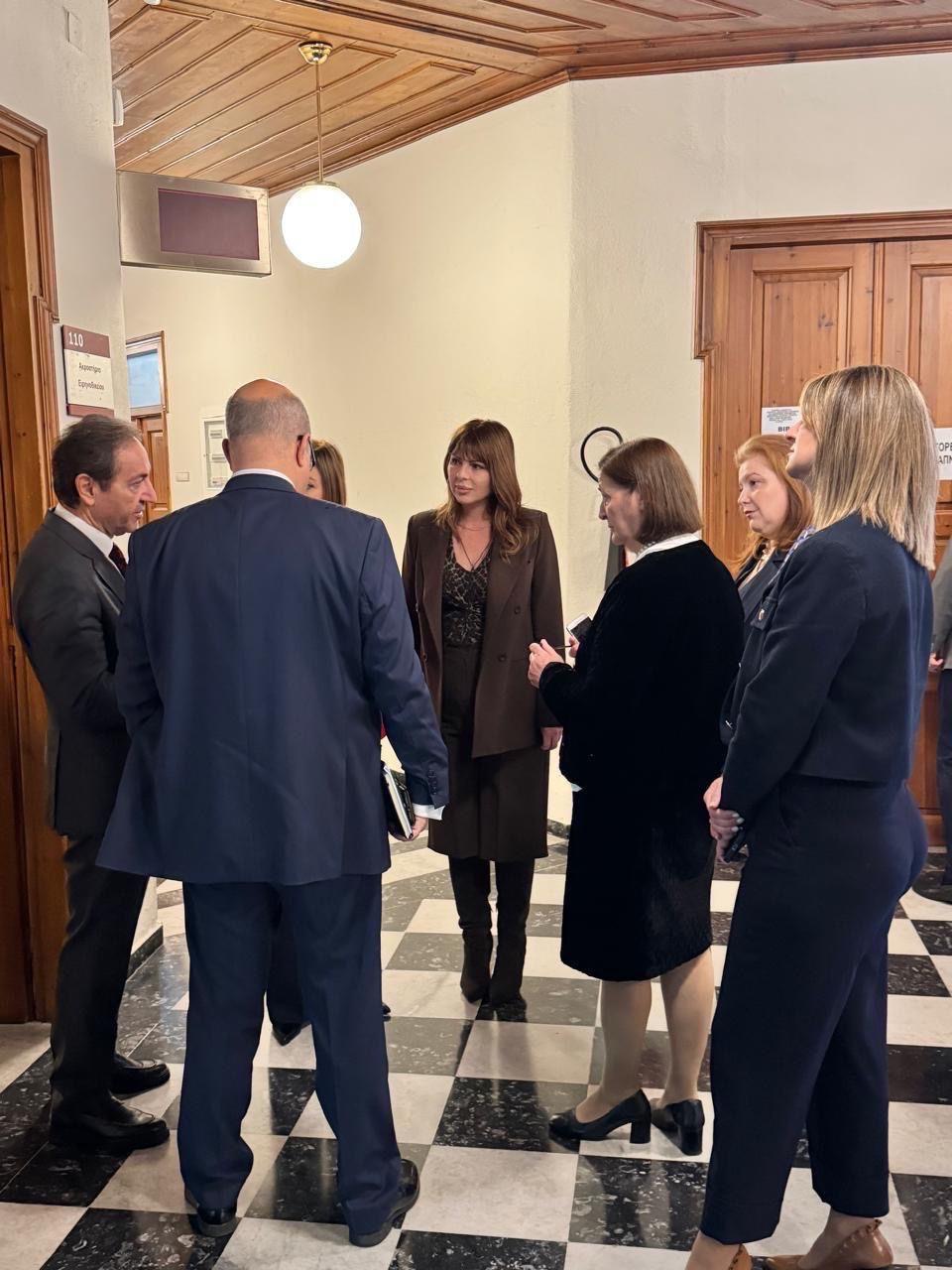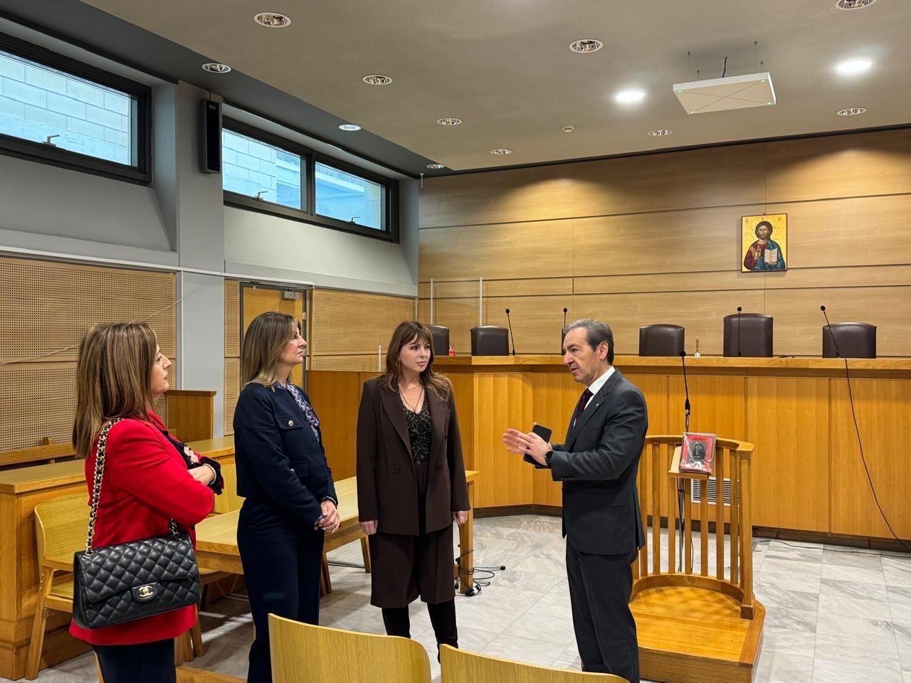 Η Βουλευτής Τρικάλων της Νέας Δημοκρατίας και πρώην Υφυπουργός, Κατερίνα Παπακώστα – Παλιούρα, συνόδευσε σήμερα τον Υφυπουργό Δικαιοσύνης κ. Ιωάννη Μπούγα και τον Γενικό Γραμματέα του Υπουργείου Δικαιοσύνης κ. Πέλοπα Λάσκο, κατά την επίσκεψή τους στα δικαστήρια της Περιφερειακής Ενότητας Τρικάλων. Στο πλαίσιο των διαδοχικών συσκέψεων σε Καλαμπάκα και Τρίκαλα, εξετάστηκε ένα ευρύ φάσμα ζητημάτων, από τις κτιριακές και στεγαστικές ανάγκες, τη στελέχωση και την καθημερινή λειτουργία των δικαστικών υπηρεσιών, έως την πρόοδο της ψηφιακής μετάβασης και βεβαίως την αναλυτική αποτίμηση της εφαρμογής του νέου Δικαστικού Χάρτη στη Θεσσαλία.
